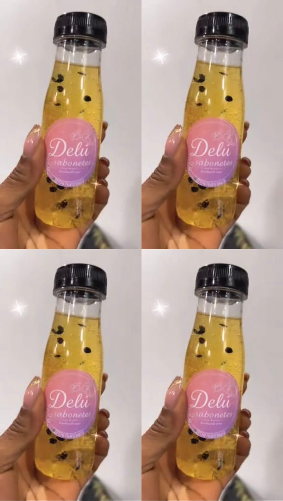 Sabonete em gel Maracujá. Com extrato, essência e sementes de maracujá. Hidrata e preserva o colágeno da pele. 200ml.